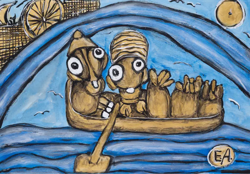 Емма Андієвська. Птахи й вітрильники. Папір, змішана техніка. 2007. Музей української діаспори