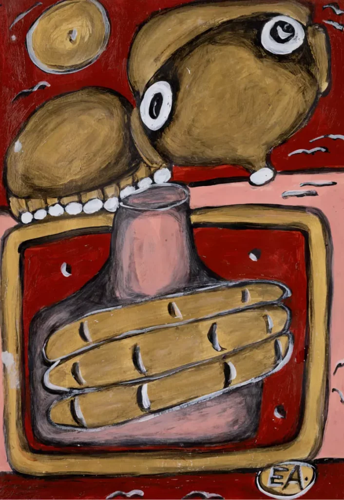 Емма Андієвська. При хлібі й вині. Папір, змішана техніка. 2007. Музей української діаспори