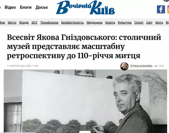 Вечірній Київ 11.11.2025 Всесвіт Якова Гніздовського: столичний музей представляє масштабну ретроспективу до 110-річчя митцяДізнатися більше