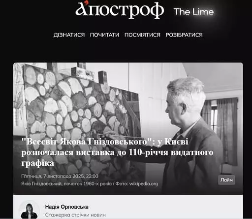Апостроф 07.11.2025 "Всесвіт Якова Гніздовського": у Києві розпочалася виставка до 110-річчя видатного графікаДізнатися більше