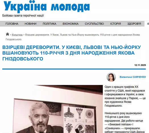 Україна молода 12.11.2025 Взірцеві дереворити. У Києві, Львові та Нью-Йорку вшановують 110-річчя з дня народження Якова ГніздовськогоДізнатися більше